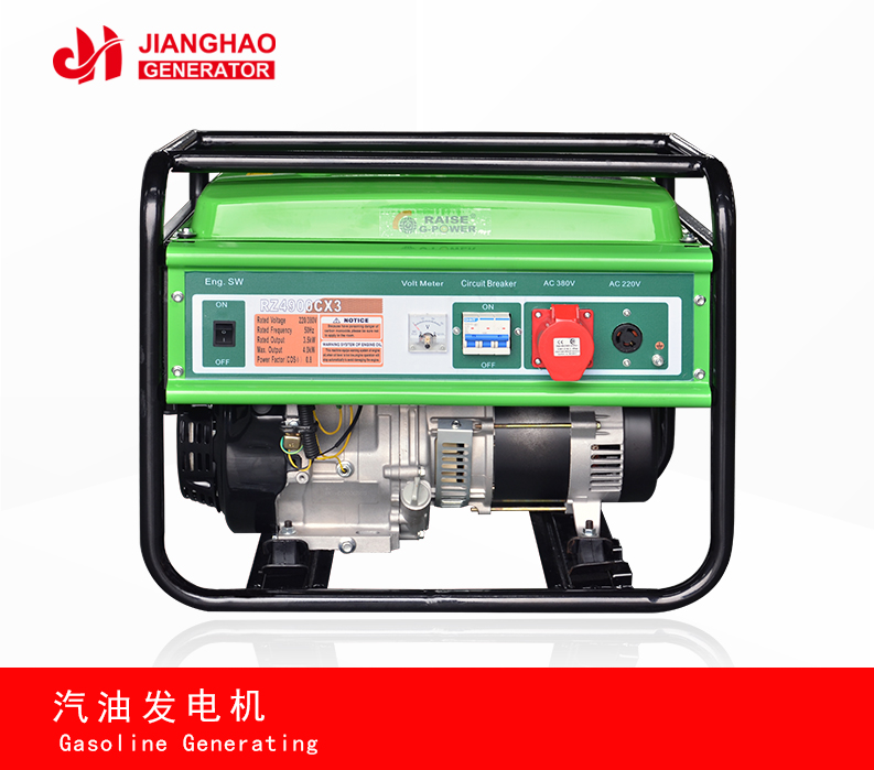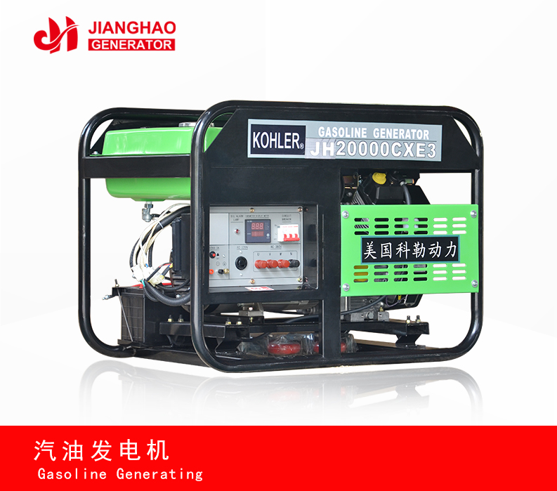 江豪动力汽油发电机组采用进口科勒汽油发动机或江豪动力发动机与带AVR发电机配套,该机组发电可靠,性能安全可靠,易于操作和保养简单。机组转速3000rpm,冷却系统为强制风冷。电机采用有刷AVR励磁。增设阻尼绕组,改善发电机并联运行性能,又可抑制发电机瞬时过电压和转子回路过电压。主机定子通过AVR为励磁磁场提供励磁源,AVR是调节励磁磁场电流的控制装置。AVR根据来自主机定子绕组的电压感应信号作出反馈,通过转子磁场,调节转子输出功率,从而达到控制主机磁场电流的要求。AVR通过感应两相平均电压,确保高精度的电压调整率。为方便小机组移动方便,每台机组配置4只万向轮